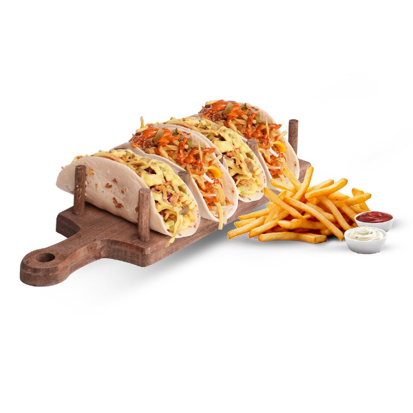 3 ADET AMERİCANO SOSLU TACO 3 ADET HAWAİ SOSLU TACO VE YANINDA PATATES KIZARTMASI