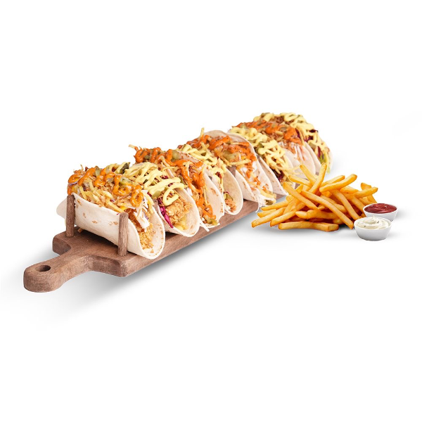 4 ADET AMERİCANO SOSLU TACO 4 ADET HAWAİ SOSLU TACO VE YANINDA PATATES KIZARTMASI
