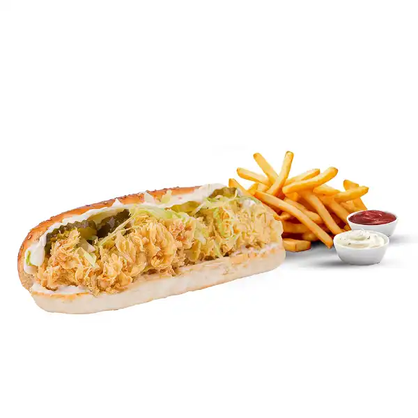 12 SAAT MARİNE EDİLMİŞ 170 - 200 GR ÇITIR TAVUK, SWEET MAYO, ICEBERG, ALMAN TURŞUSU VE YANINDA PATATES KIZARTMASI